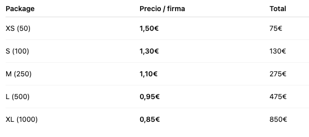 Pakete und Preise pro Unterschrift