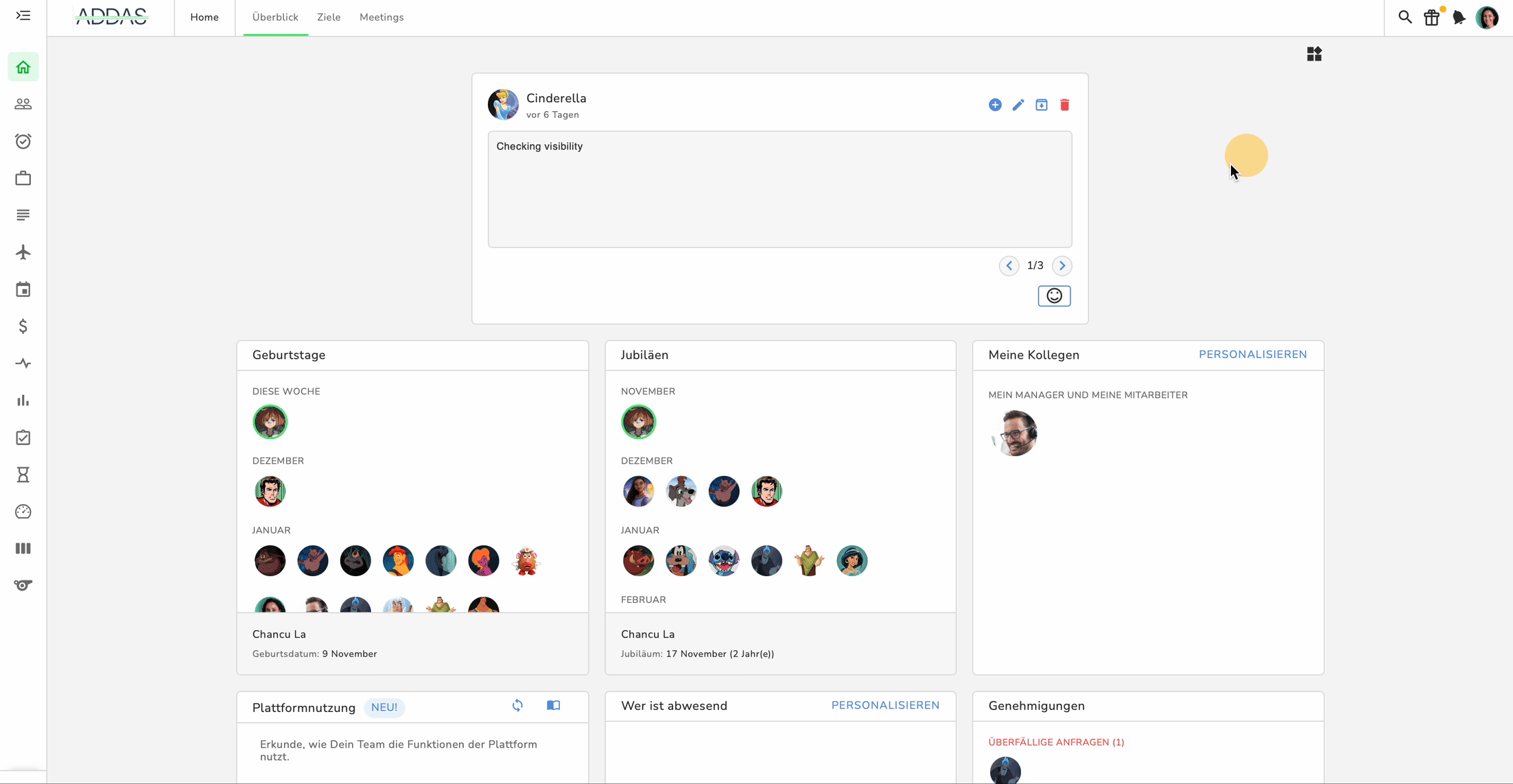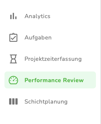 Nach der Aktivierung taucht das Performance Review Symbol in deiner linken Navigationsleiste auf.