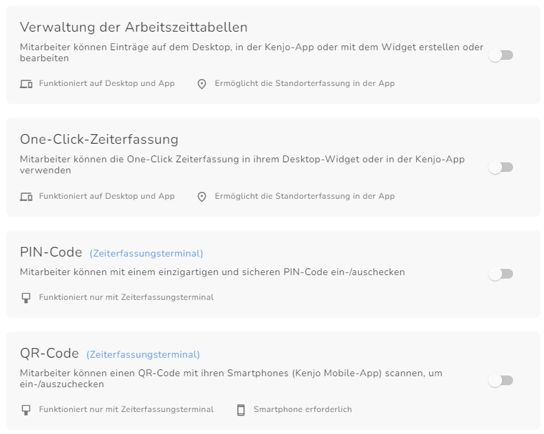 Kiosk: Eine Lösung, die es dir ermöglicht, dich zu Beginn und am Ende deiner Arbeitstage physisch selbst ein- und auszuchecken.