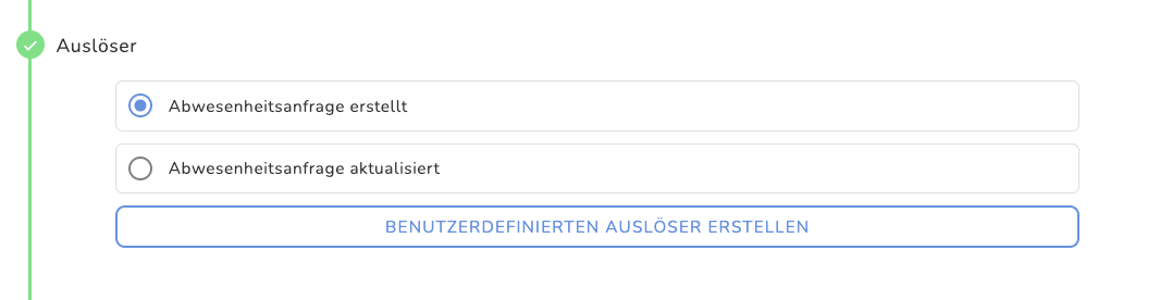 Auslöser: ist ein Ereignis oder eine Aktion, die den Workflow startet. Je nach gewähltem Objekt stehen verschiedene Auslöser zur Auswahl. Das bedeutet, dass du auswählen kannst, was das System reagieren lässt und die Aktion auslöst, die du später einrichtest. Du kannst nur einen Auslöser für deinen Workflow auswählen. In diesem Artikel findest mehr dazu!