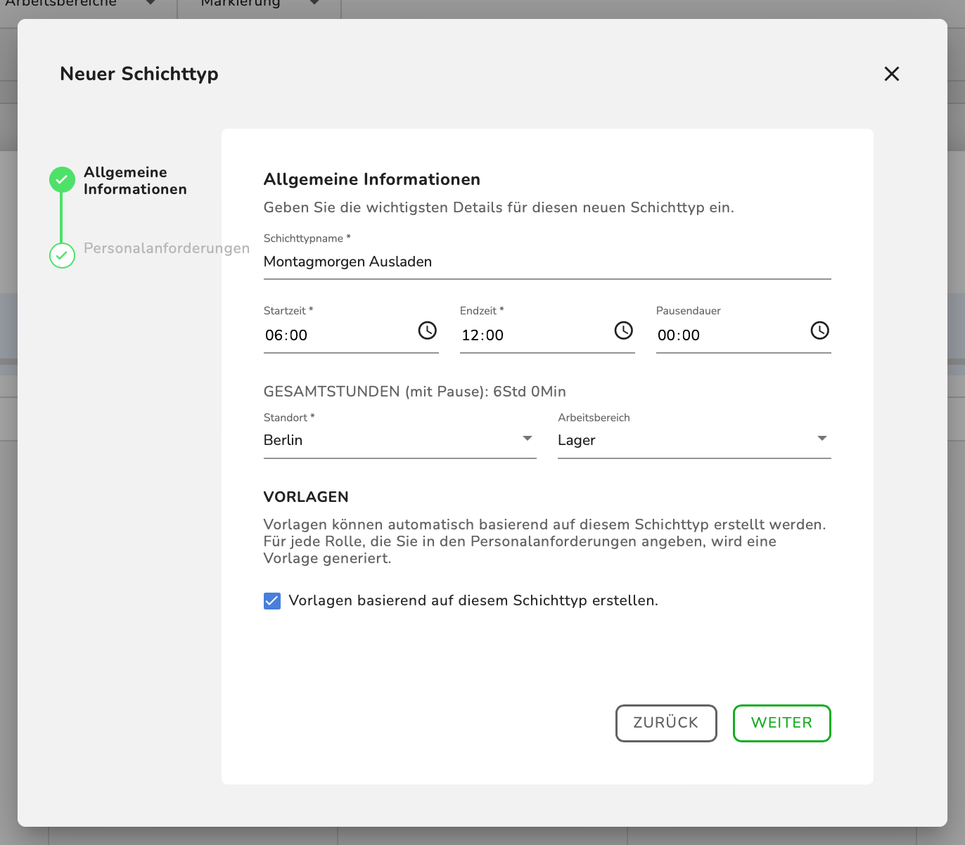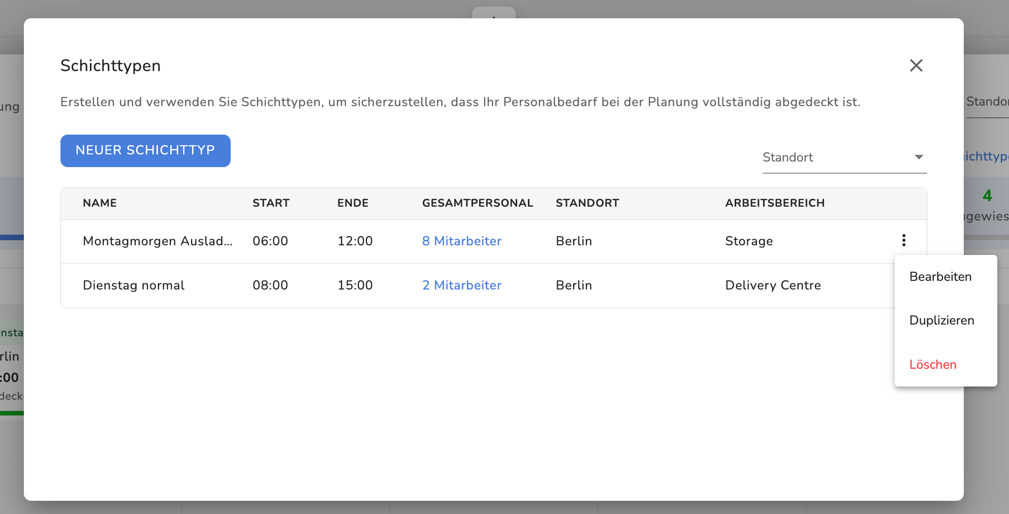 - Schichttyp/geplante Kapazität bearbeiten und verwalten