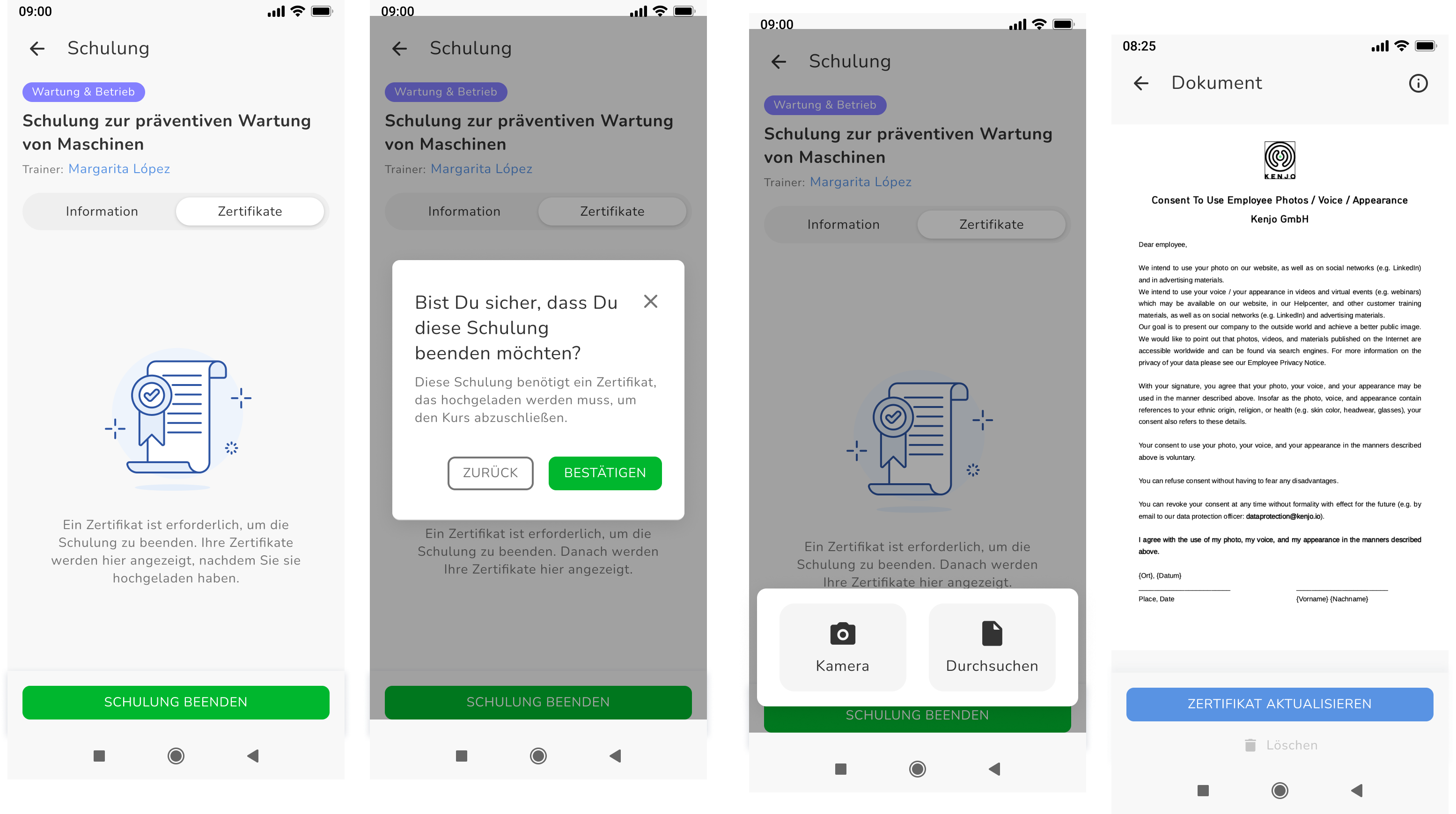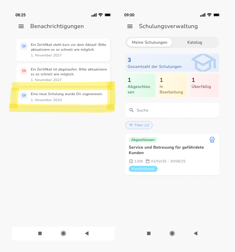 So schließen Mitarbeiter Trainings mit oder ohne erforderliches Zertifikat ab