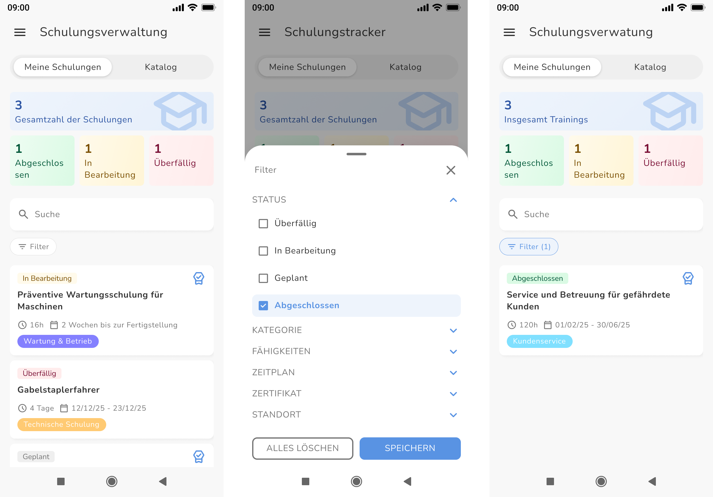 - So schließen Mitarbeiter Trainings mit oder ohne erforderliches Zertifikat ab