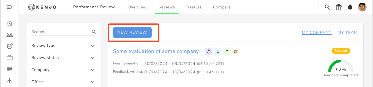Through Profiles and permissions, you can manage your employees' scope and access to various functions and modules of Kenjo, such as Performance review. To manage these permissions, you can create custom profiles and enable or disable various permissions. Kenjo standard profiles like admin, finance admin or employee have default permissions that can't be changed. For custom profiles you can adjust permissions as needed.