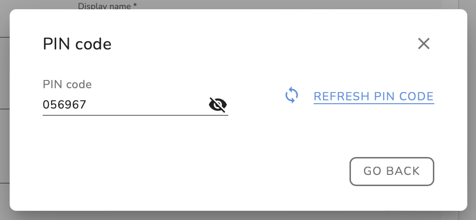 • To reset code: Click REFRESH PIN CODE to set a new code
