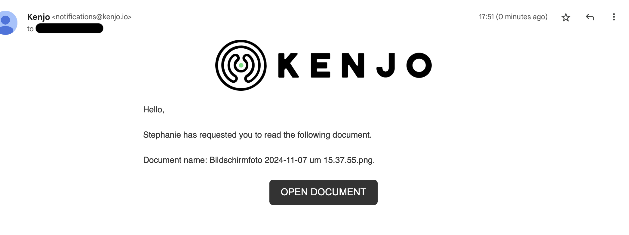 - Click on OPEN DOCUMENT in your e-mail inbox.