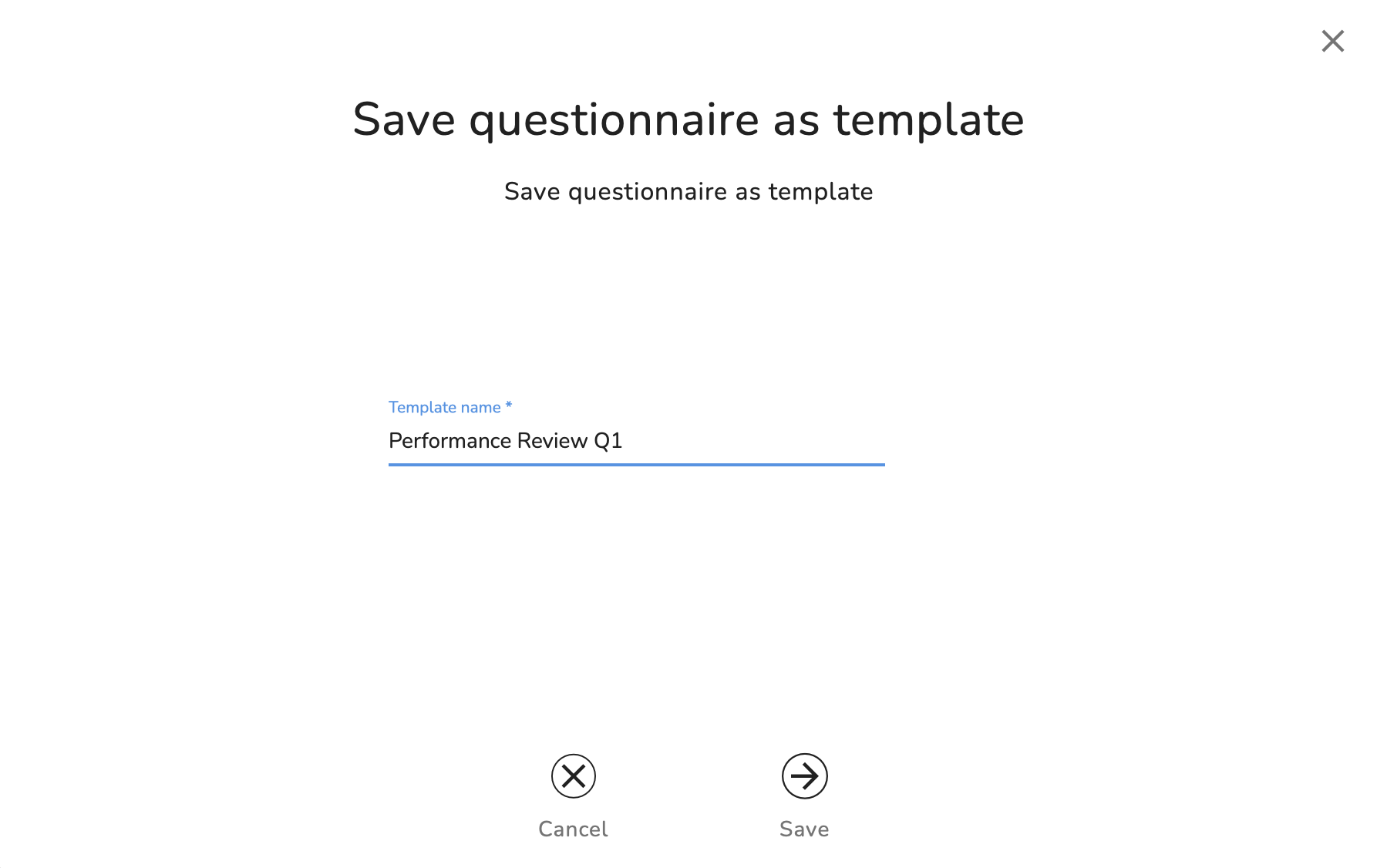 Once you add the questions, you can save a template by choosing the Save questionnaire as a template option.