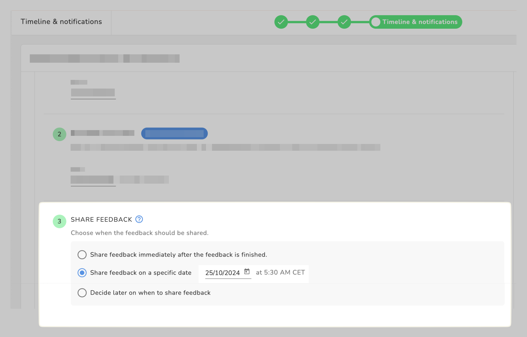 Choose when the feedback should be shared,