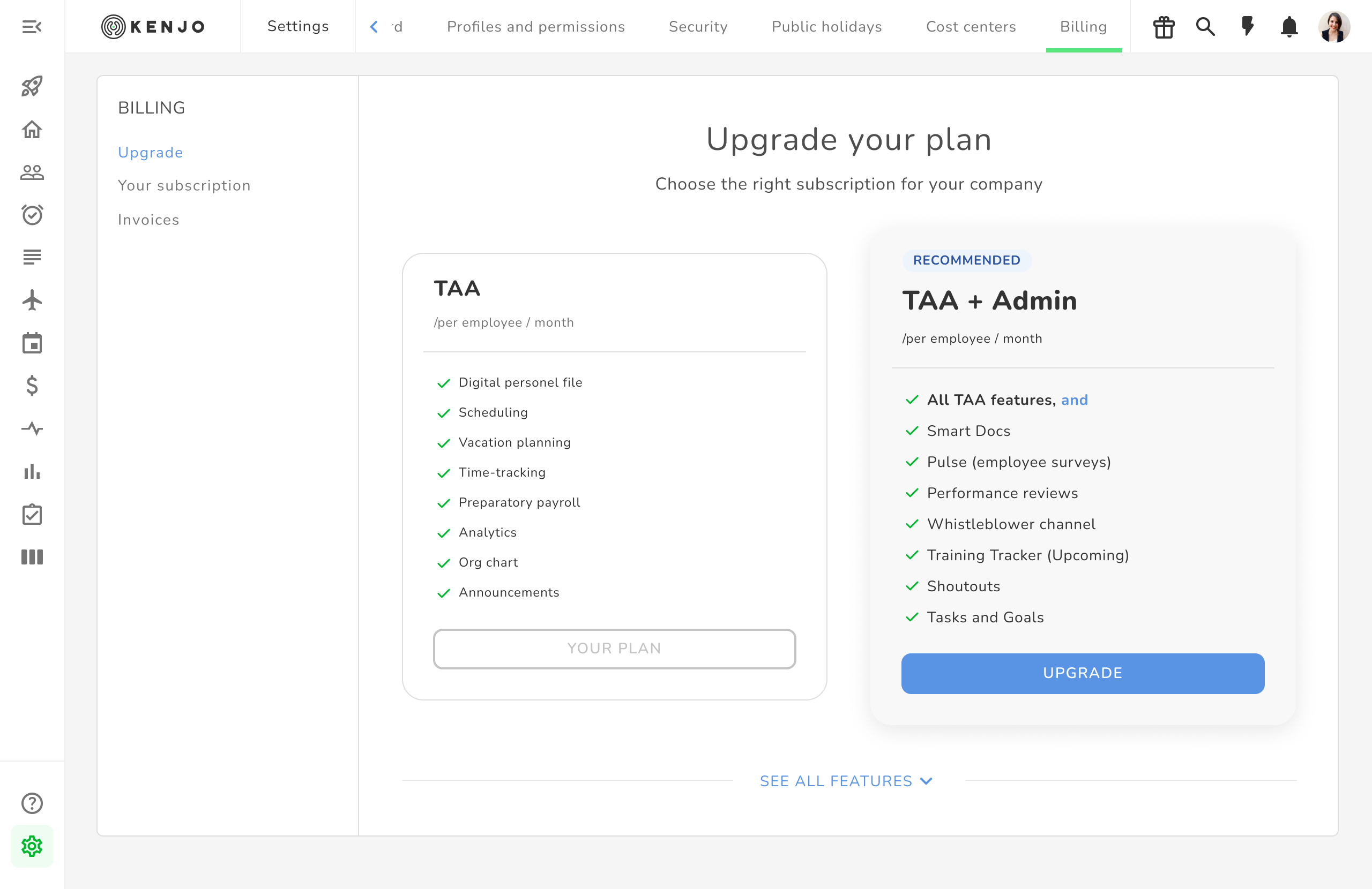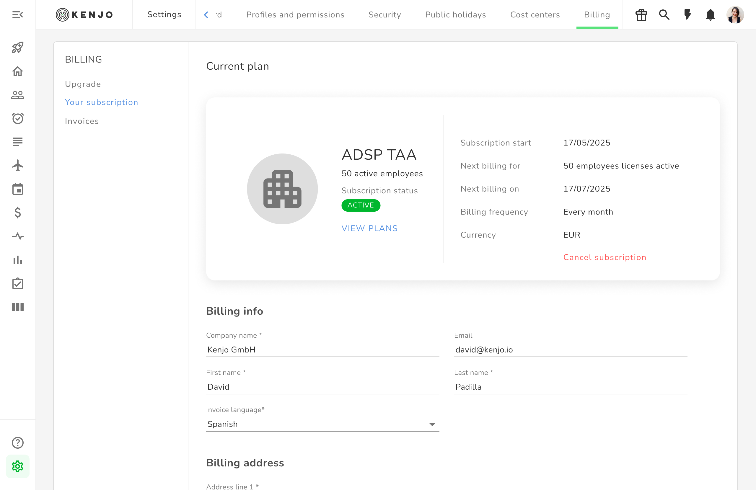 You can now easily manage your Kenjo subscription inside the Kenjo platform.