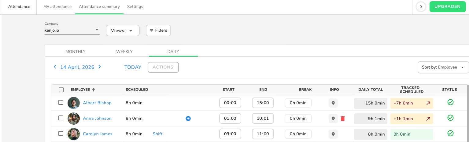 The My attendance's view for employees and the Attendance section of each employee for admins, is being updated as part of our new redesign for shift-based work schedules.