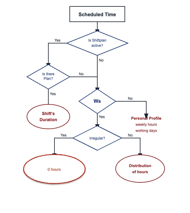- Scheduled time =The hours your employee is scheduled to work (according to Shiftplan or Work Schedule)