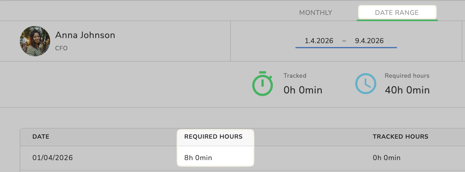 Calculation: Weekly required hours ÷ Minimum working days = Daily required hours