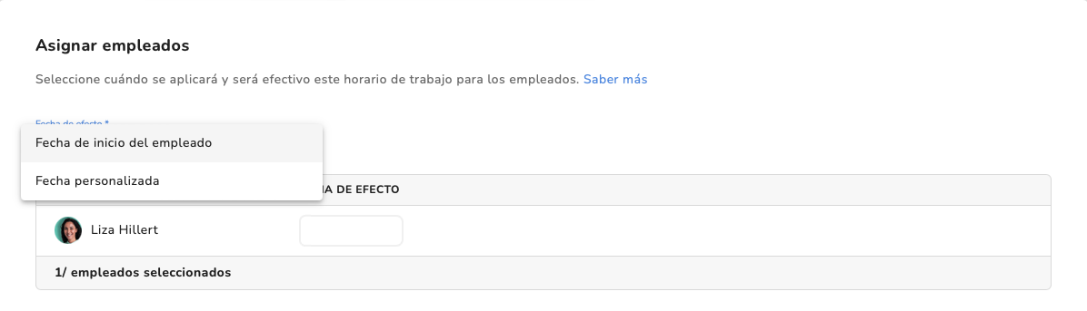 Con la fecha de inicio personalizada puedes definir una fecha para cada persona que estés asignando al horario de trabajo. Puedes: