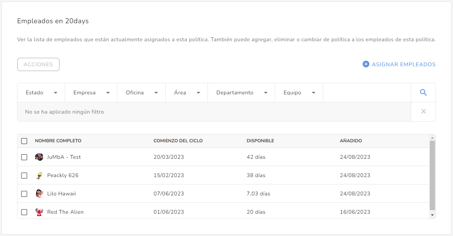 ¿Has creado nuevas políticas para el próximo año? Entonces recuerda que aún necesitas asignarlas a los empleados correspondientes.