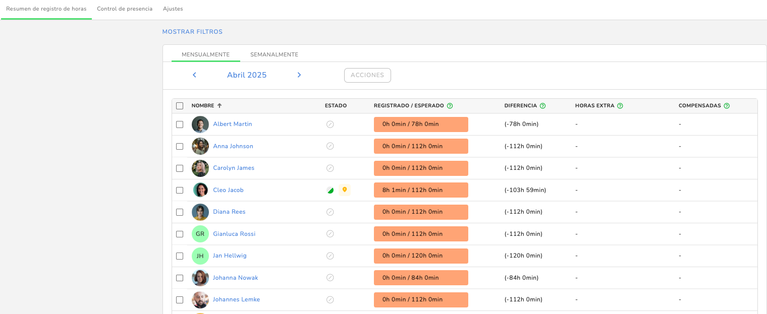 También puedes ver información relacionada con la ubicación en el Resumen de Registro de horas bajo Personas > Resumen de registro de horas