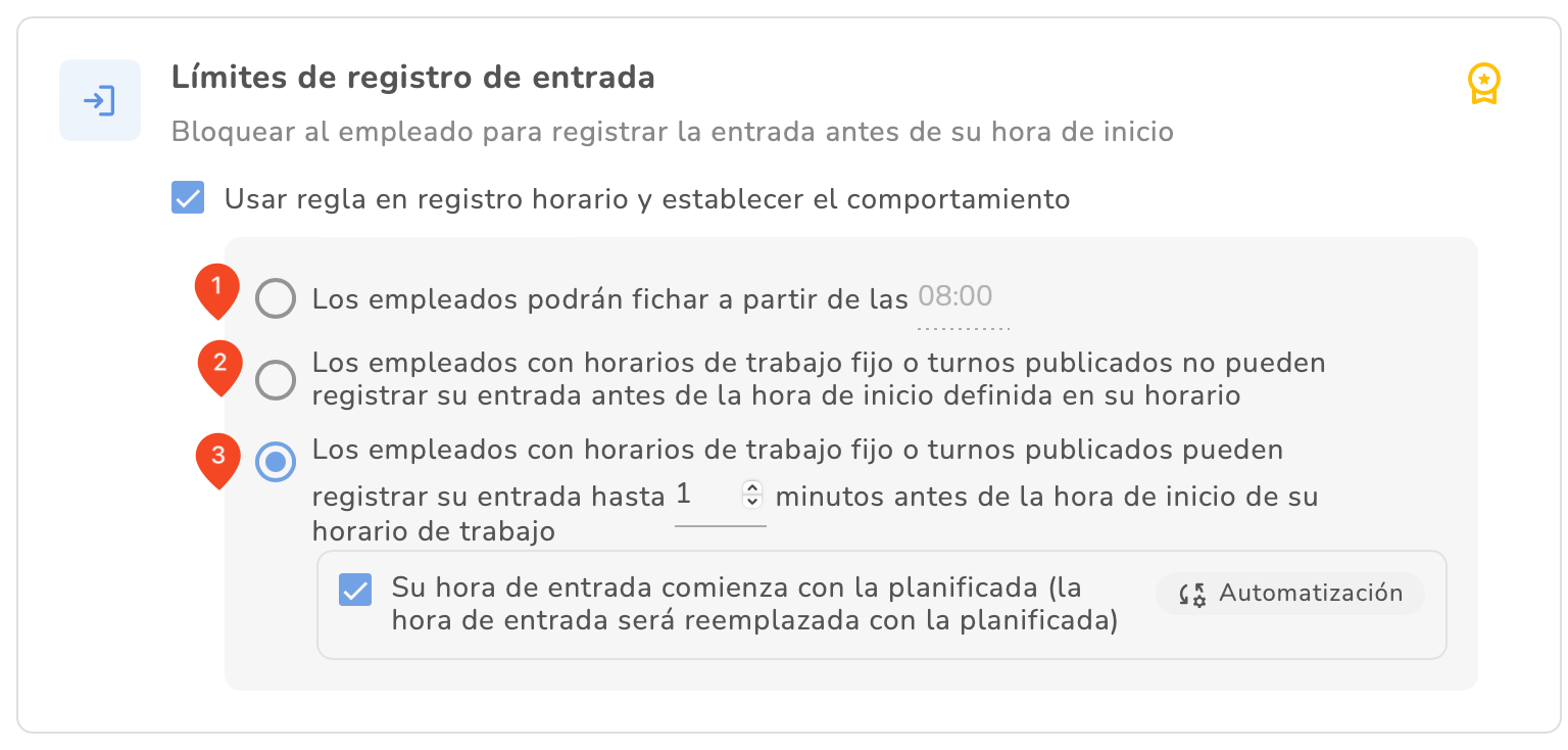 Aquí puedes restringir o permitir que los empleados fichen antes de su hora planificada de trabajo.