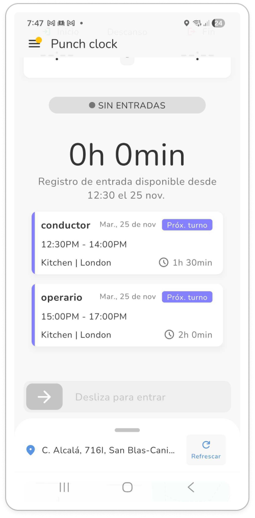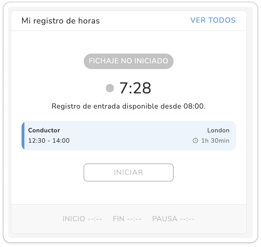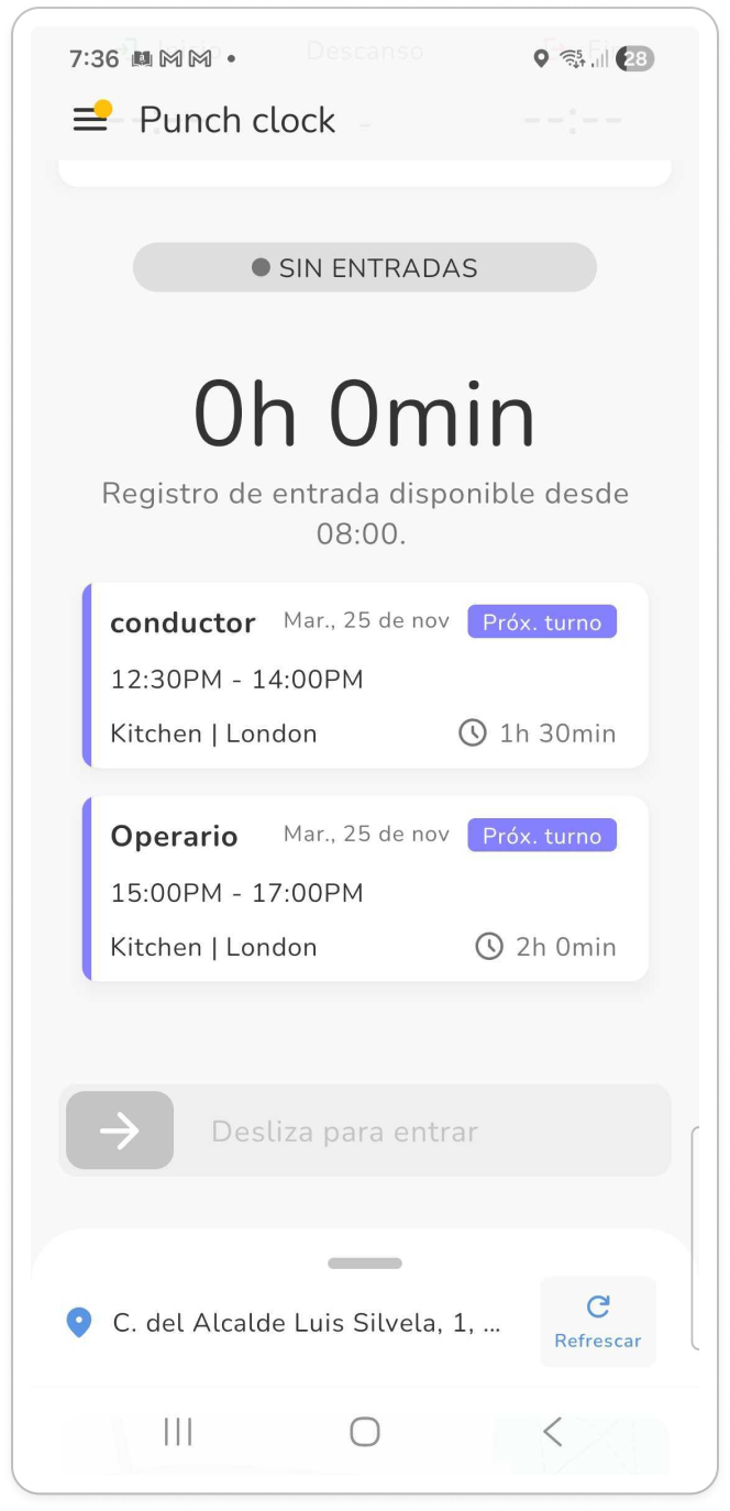 No pueden fichar antes. En este ejemplo, los empleados solo pueden fichar a partir de las 07:30 y las 08:00. Dependiendo del método, verán estos mensajes: