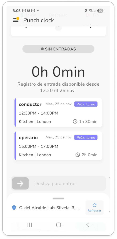 2. Los empleados reciben un bloqueo si intentan fichar antes de su tiempo planificado
