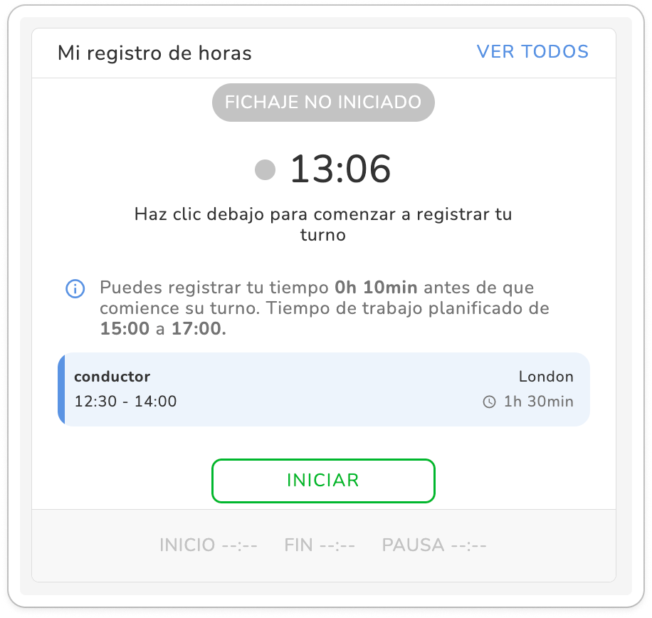 - Los empleados pueden fichar antes (por ejemplo, 10 minutos antes), pero el tiempo de trabajo remunerado comienza solo a la hora originalmente planificada.