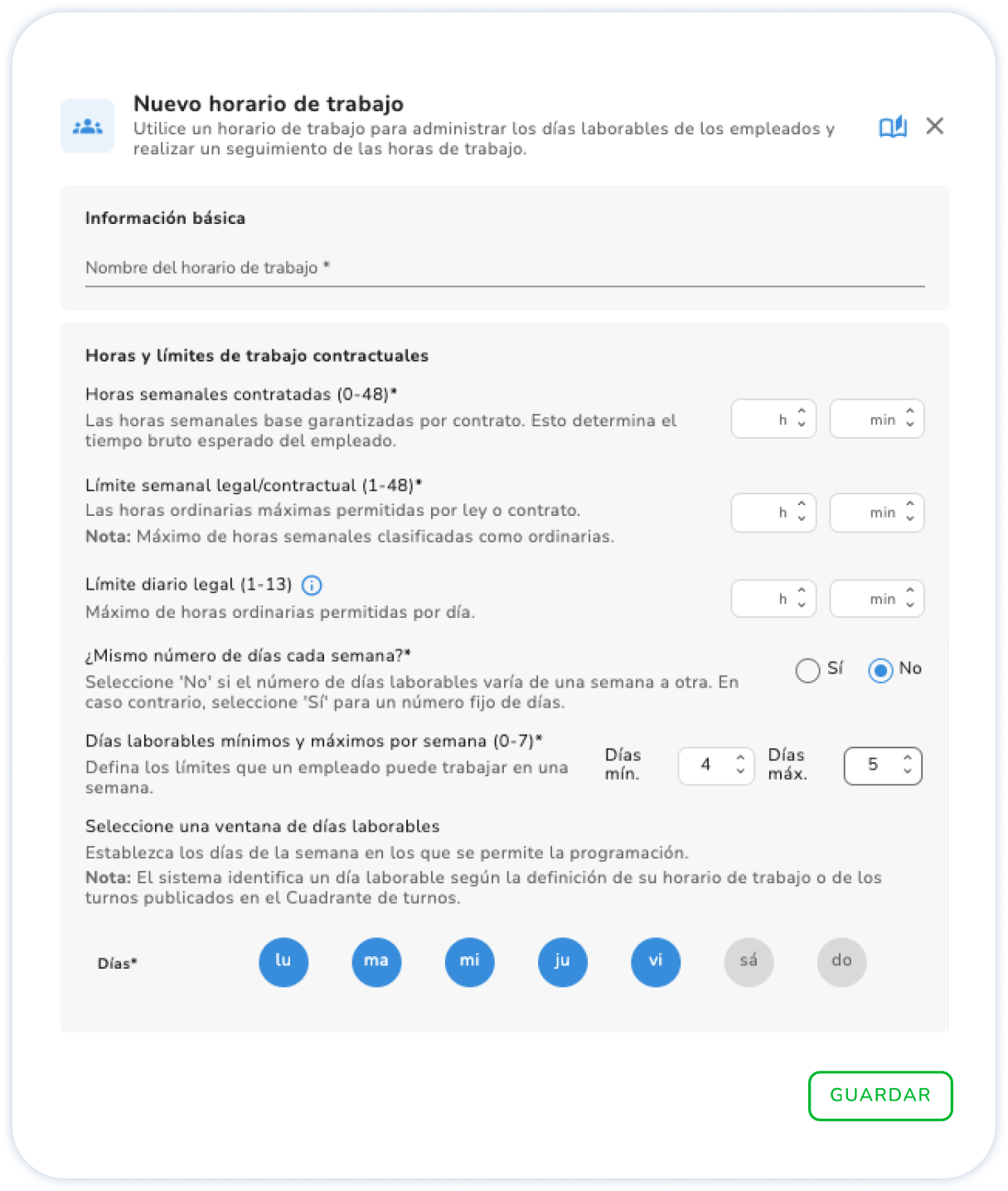 Esta configuración es ideal para roles basados en turnos o horarios muy variables, como en hostelería o retail.