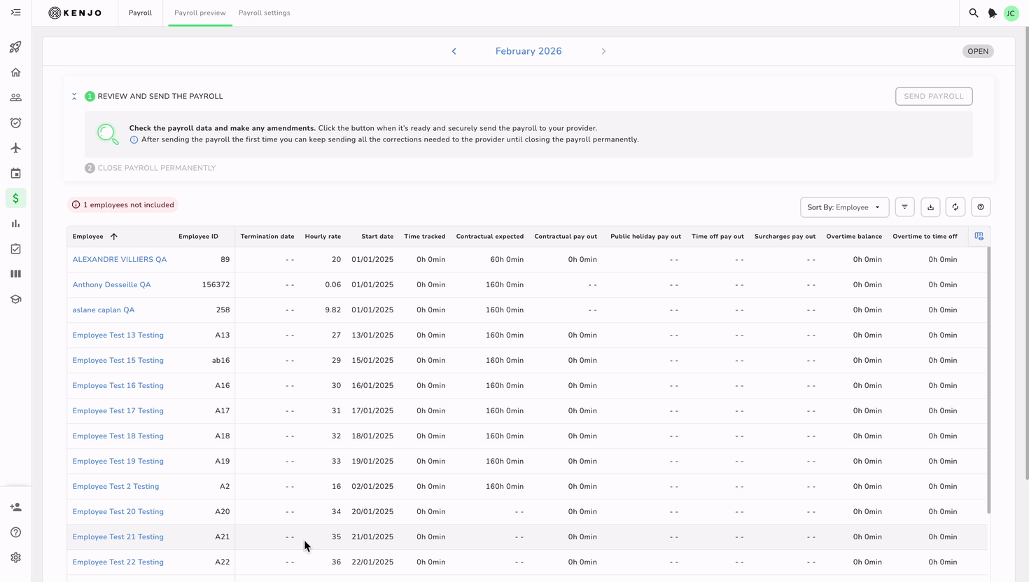 - Vai su Payroll > Impostazioni payroll