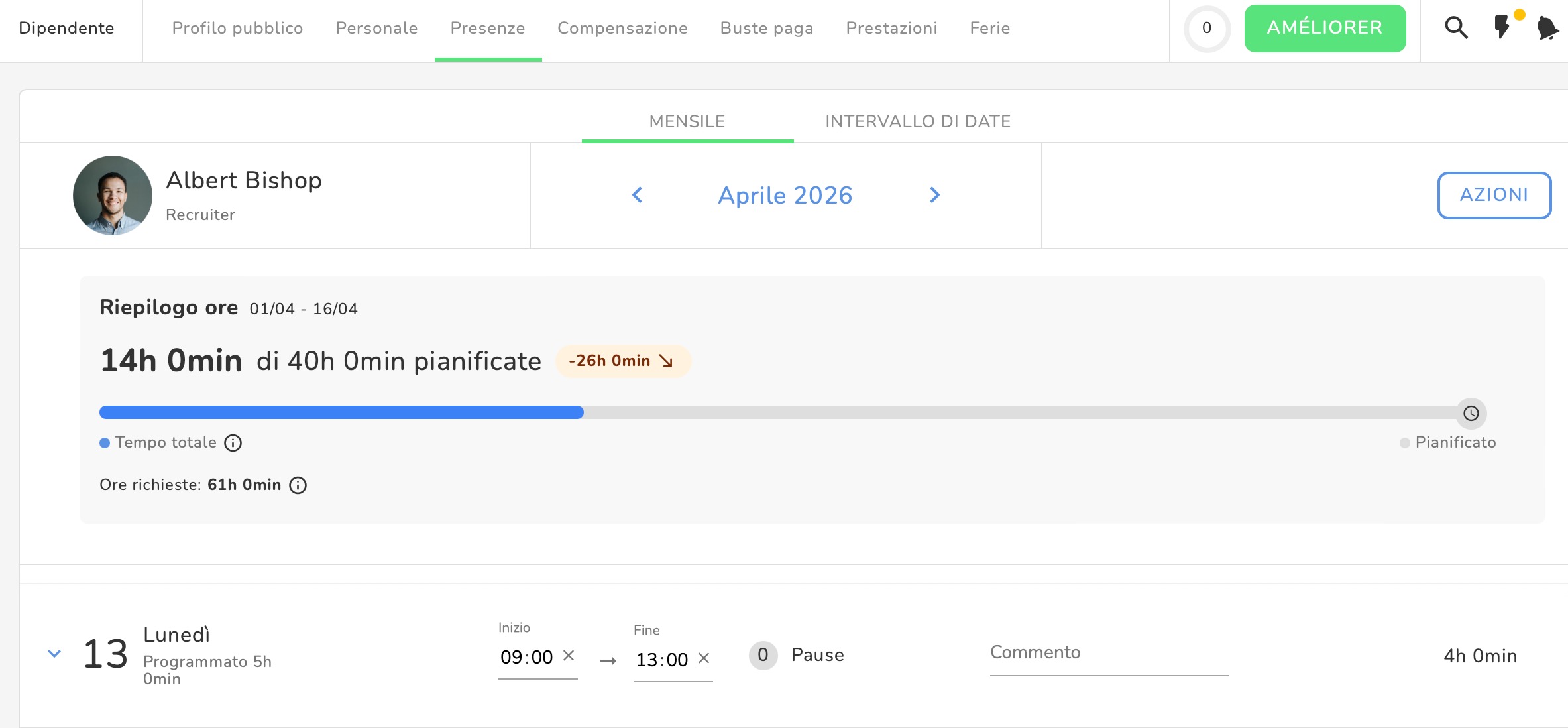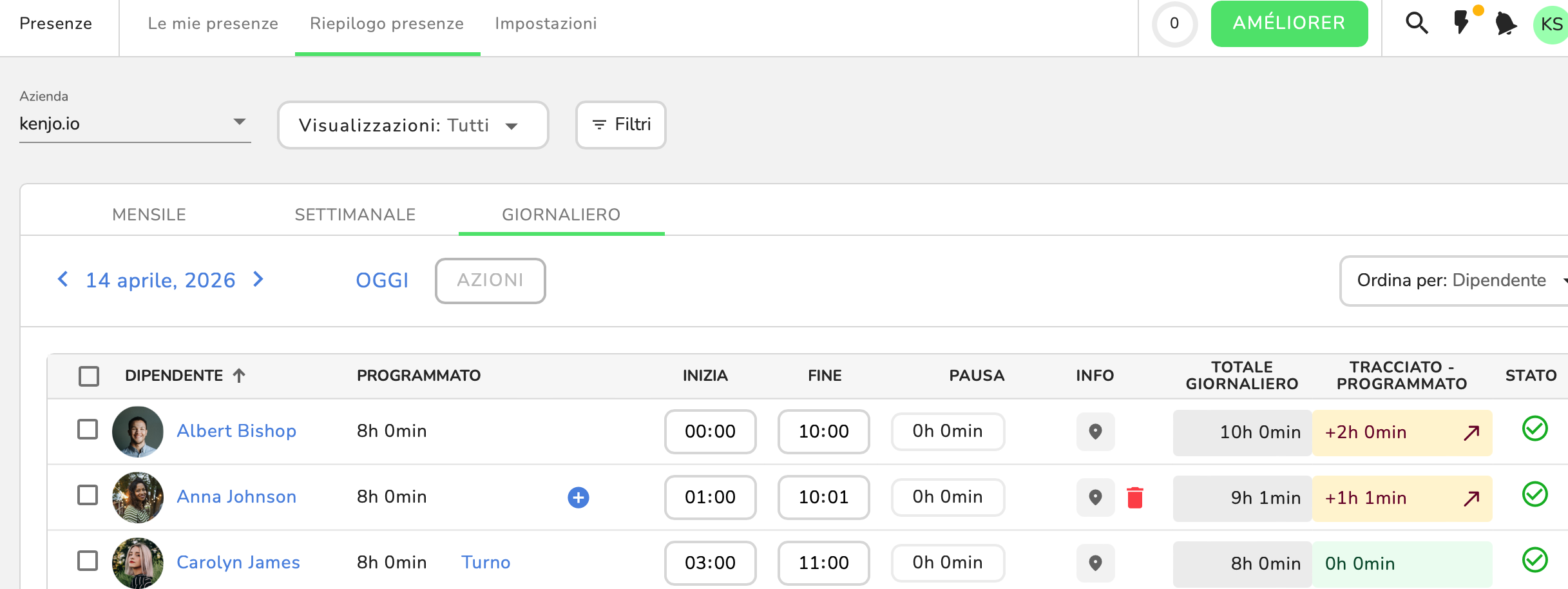 La vista giornaliera delle presenze può essere utilizzata dagli amministratori come una dashboard.