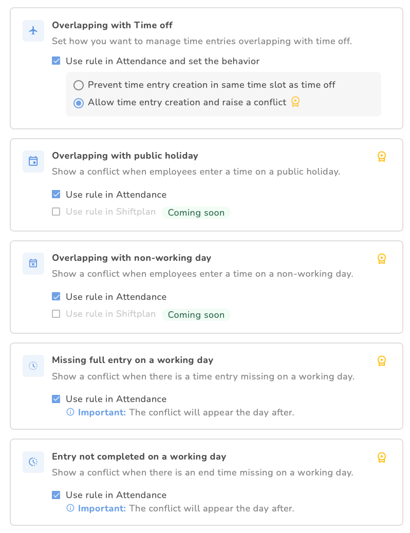 Let op: We verhinderen medewerkers niet om tijdinvoer met conflicten vast te leggen; de invoer wordt alleen als conflict gemarkeerd.